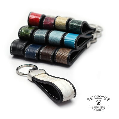 【オリジナルブランド】【メール便送料無料】本革 クロコダイル ストラップ キーホルダー 革 おしゃれ キーリング レザー メンズ ブランド バッグチャーム 本革 ワニ革 サイドブラック オールドポイント OLD POINT ネコポス対応 母の日 ギフト 父の日 プレゼント クリスマス